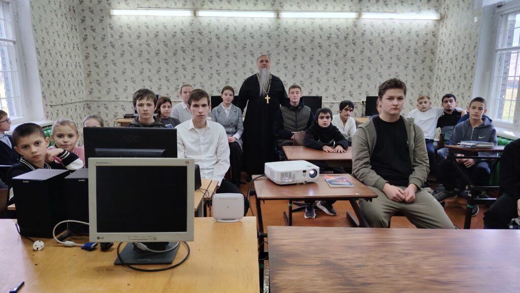 12 декабря 2025 года в средней школе д. Осиповичи настоятель храма Воздвижения Креста Господня в аг. Головчицы иерей Александр Бондарев провёл беседу со школьниками на тему: «Праздники, посвящённые Пресвятой Богородице. Введение во Храм Пресвятой Богородицы».