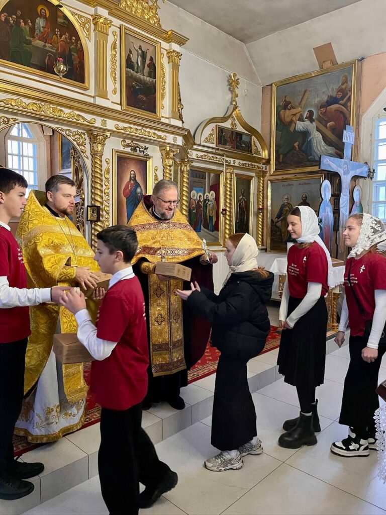 На следующий день праздник продолжился за Божественной Литургией. Ребята вновь активно участвовали в службе, выполняя различные послушания, и, что самое главное, все соборно причастились Святых Христовых Таин. Богослужение совершил духовник и руководитель братства иерей Александр Полоско.