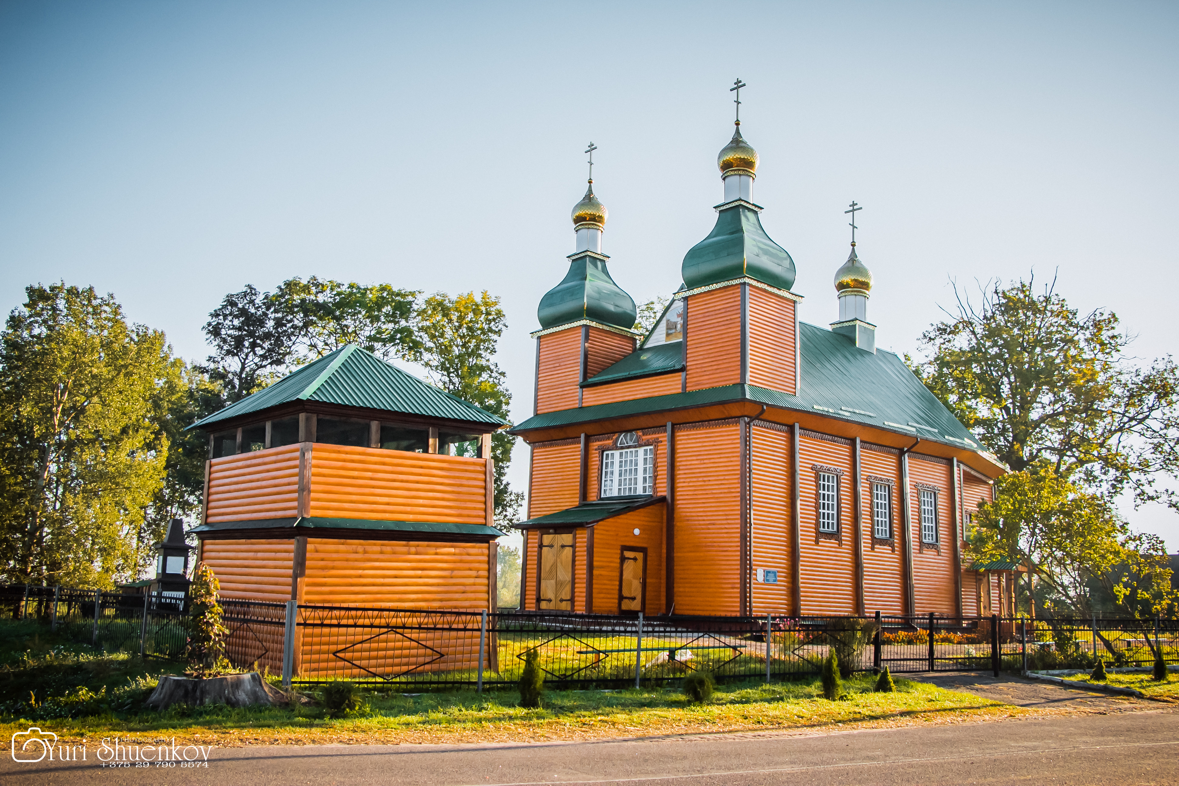 Вблизи храма находится каркасная двухъярусная колокольня, которая упоминалась в архивных документах в 1899 году. Она накрыта низкой шатровой крышей: первый ярус глухой, второй сквозной с дощатым парапетом. На колокольне находятся два колокола. На одном из них указана дата «1858», другой (со слов сторожила деревни К.И. Деренчука) – 1846 года литья, но документальных подтверждений этому нет.