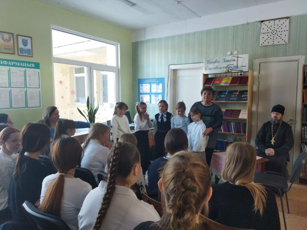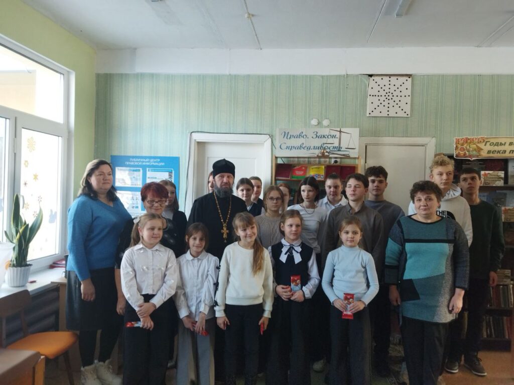 16 января в Антопольской городской библиотеке состоялась встреча настоятеля храма Воскресения Христова в г.п. Антополь протоиерея Алексия Микулича с учащимися 9-х классов Антопольской средней школы на тему «Под чистым небом Рождества», организованная библиотекарями Попроцкой Еленой Михайловной и Шульженко Ларисой Фёдоровной.