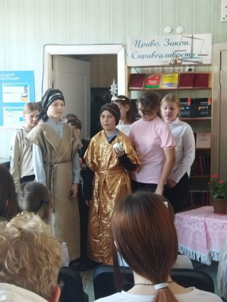 Воспитанники воскресной школы выступили с ярким рождественским представлением, а участницы вокального кружка под руководством Гупалик Ирины Владимировны исполнили рождественские песни. Встреча прошла в тёплой, дружественной атмосфере. Ребята получили возможность не только узнать о духовных основах праздников, но и задуматься о значении Рождества в жизни каждого человека.