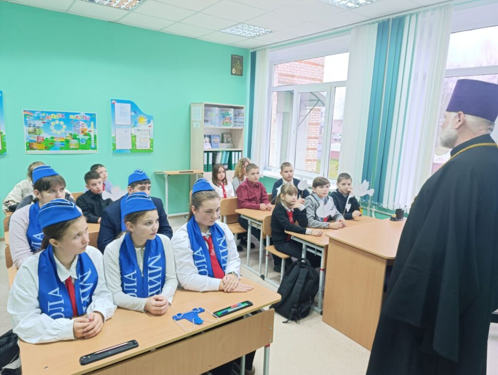 21 ноября 2025 г. в Немержанской средней школе прошёл информационный час: «Разговор о доброте и уважении» среди обучающихся 3-9 классов с протоиереем Николаем Пашкевичем, настоятелем храма Успения Пресвятой Богородицы в д. Лосинцы.