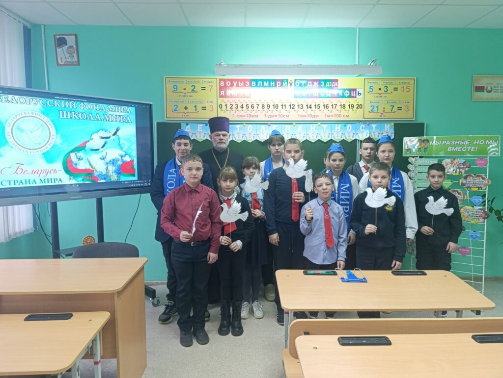 21 ноября 2025 г. в Немержанской средней школе прошёл информационный час: «Разговор о доброте и уважении» среди обучающихся 3-9 классов с протоиереем Николаем Пашкевичем, настоятелем храма Успения Пресвятой Богородицы в д. Лосинцы.