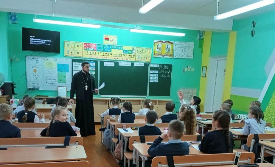 Учащиеся 2 «В» класса гимназии г. Дрогичина 24 ноября 2025 г. встретились с отцом Димитрием Гречко, священником храма Преподобной Евфросинии Полоцкой в г. Дрогичине. Мероприятие прошло под девизом: «Поделись добром с другим!» Ребята вспомнили добрые дела, которые они сегодня совершили. Отец Дмитрий на жизненных ситуациях рассказал, как важно для человека творить добро, оказывать поддержку одноклассникам и близким. Вместе учащиеся составили правила дружбы.