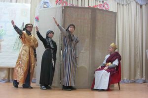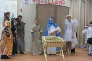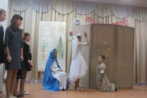 Взору учащихся-зрителей был представлен оживший библейский рассказ о событиях, произошедших на стыке эр. Ребята увидела Ангела, предсказавшего Иосифу о рождении Христа и указавшего на Священное Писание. Увидели царя Ирода и волхвов, пришедших поклониться Спасителю. Узрели ясли и обстановку, которая окружала Спасителя в момент рождения. Природа ожила в тот миг – и Ягненок, лицезревший в яслях Новорожденного Младенца, «беседовал» с Ним.