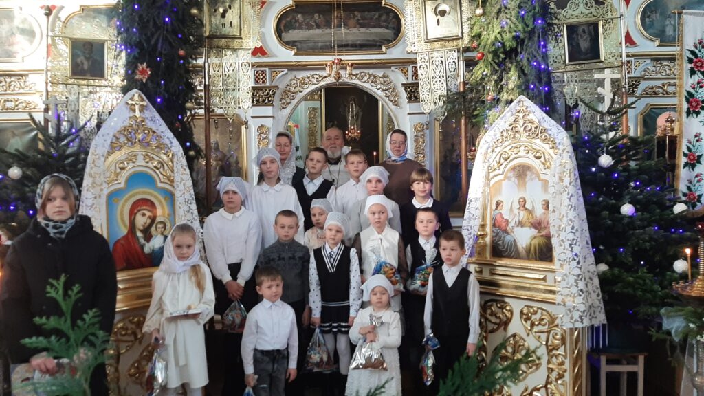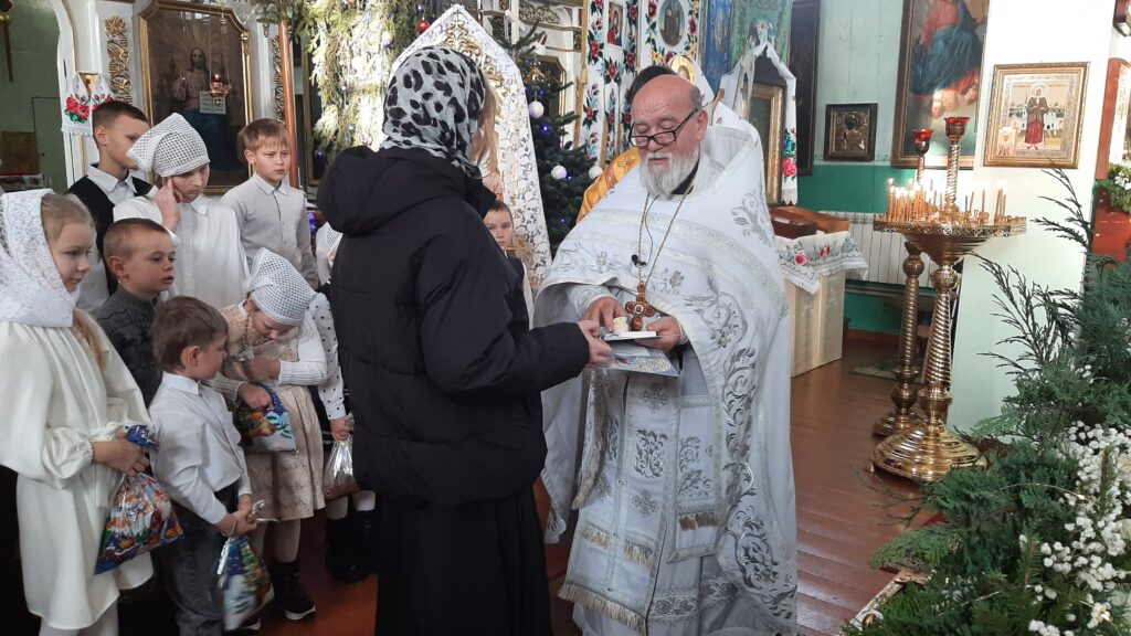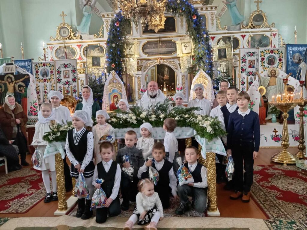 11 января в храме Святой Живоначальной Троицы в аг. Бездеж после Божественной Литургии учащиеся воскресной школы поздравили настоятеля и прихожан храма с Рождеством Христовым. В своих стихотворениях ребята прославляли родившегося Богомладенца.