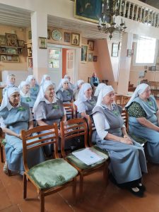 Духовник сестричества настоятель храма протоиерей Иоанн Пинчук приветсвуя сестер милосердия, сказал, что теперь сестры милосердия могут в привычном режиме нести послушания в часовне святого великомученика и целителя Пантелеимона при Дрогичинской ЦРБ и встречаться все вместе на общем собрании. Вирусная инфекция по всей стране пошла на спад.