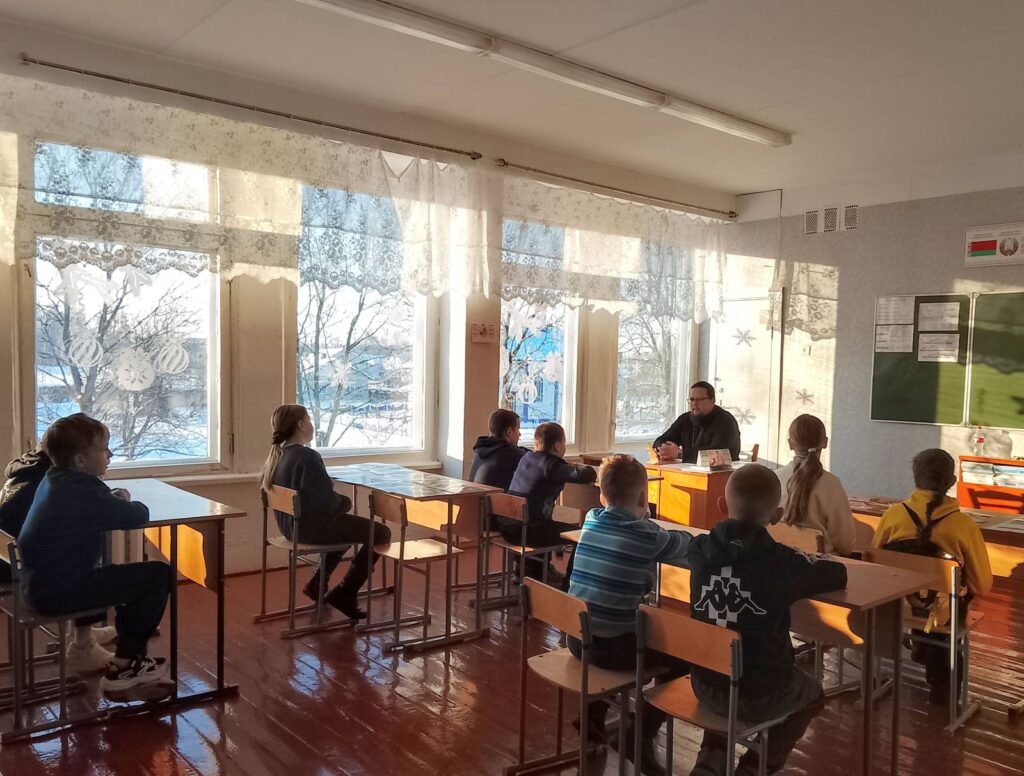 16 января 2026 года настоятель храма Рождества Пресвятой Богородицы в дер. Ляховичи иерей Сергий Богуш провел встречу с учениками 1-4 классов ГУО «Заречковская средняя школа».