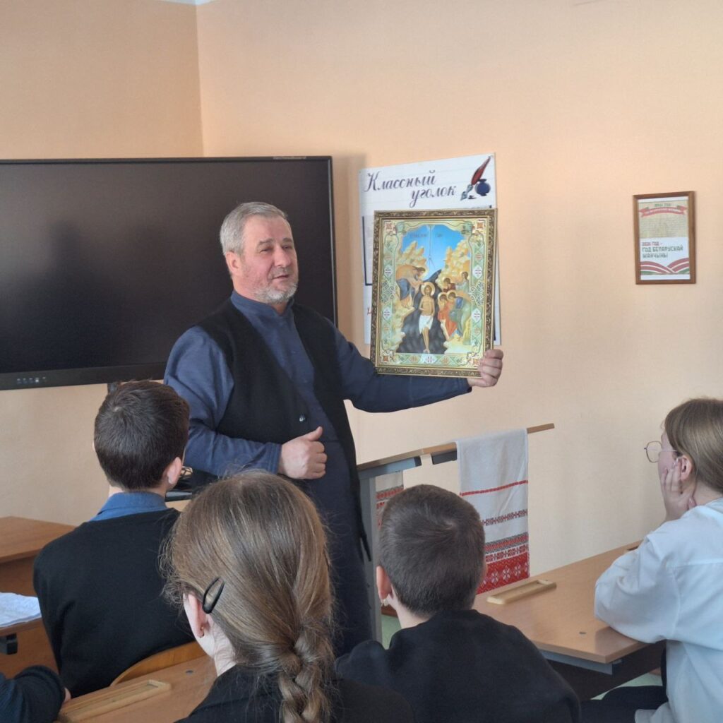 15 января 2026 г. настоятель храма святого Архангела Михаила в аг. Осовцы посетил Осовецкую среднюю школу. Священник и воспитанники Воскресной школы рассказали ребятам библейскую историю Рождества Христова, а также о приближающемся празднике Крещения Господня. Внимание ребят привлекла святая икона с изображением Господа нашего Иисуса Христа, принимающего Крещение от святого Иоанна Предтечи. Священник пояснил присутствующим, почему праздник Крещения Господня именуется Богоявлением и на святом образе показал, как одновременно три Божественных Лица явились народу на реке Иордан. В завершение встречи все сфотографировались на память.