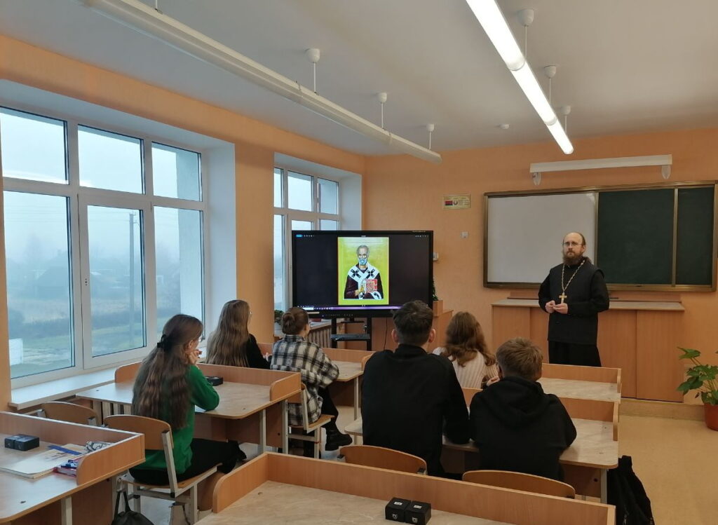 Беседа была посвящена святителю Николаю Чудотворцу — одному из самых любимых и почитаемых святых Православной Церкви. Отец Димитрий рассказал ребятам о его жизни, милосердии и помощи людям, а также о важности молитвы и добрых дел в нашей повседневной жизни. Школьники проявили живой интерес к теме, задавали вопросы и обменивались впечатлениями.