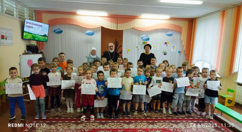 24 ноября 2025 года состоялась встреча настоятеля храма преподобной Евфросинии Полоцкой в г. Дрогичине протоиерея Иоанна Пинчука и сестры сестричества милосердия Людмилы Шевчук с воспитанниками старших групп Детского сада №3 г. Дрогичина.