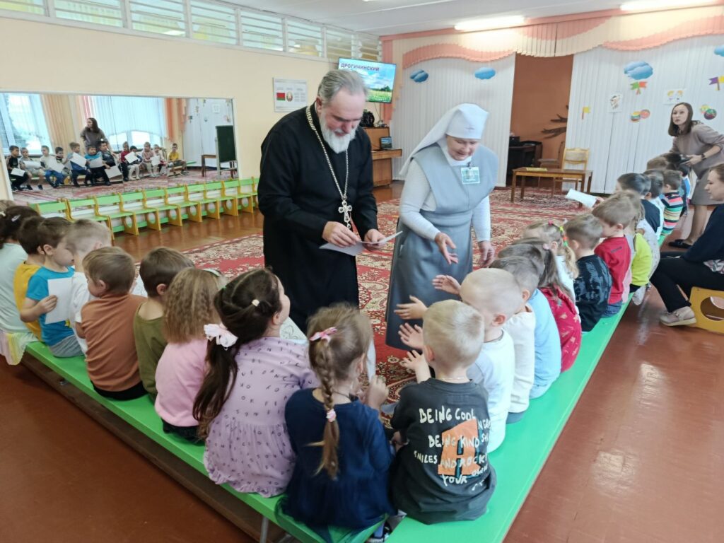 24 ноября 2025 года состоялась встреча настоятеля храма преподобной Евфросинии Полоцкой в г. Дрогичине протоиерея Иоанна Пинчука и сестры сестричества милосердия Людмилы Шевчук с воспитанниками старших групп Детского сада №3 г. Дрогичина.