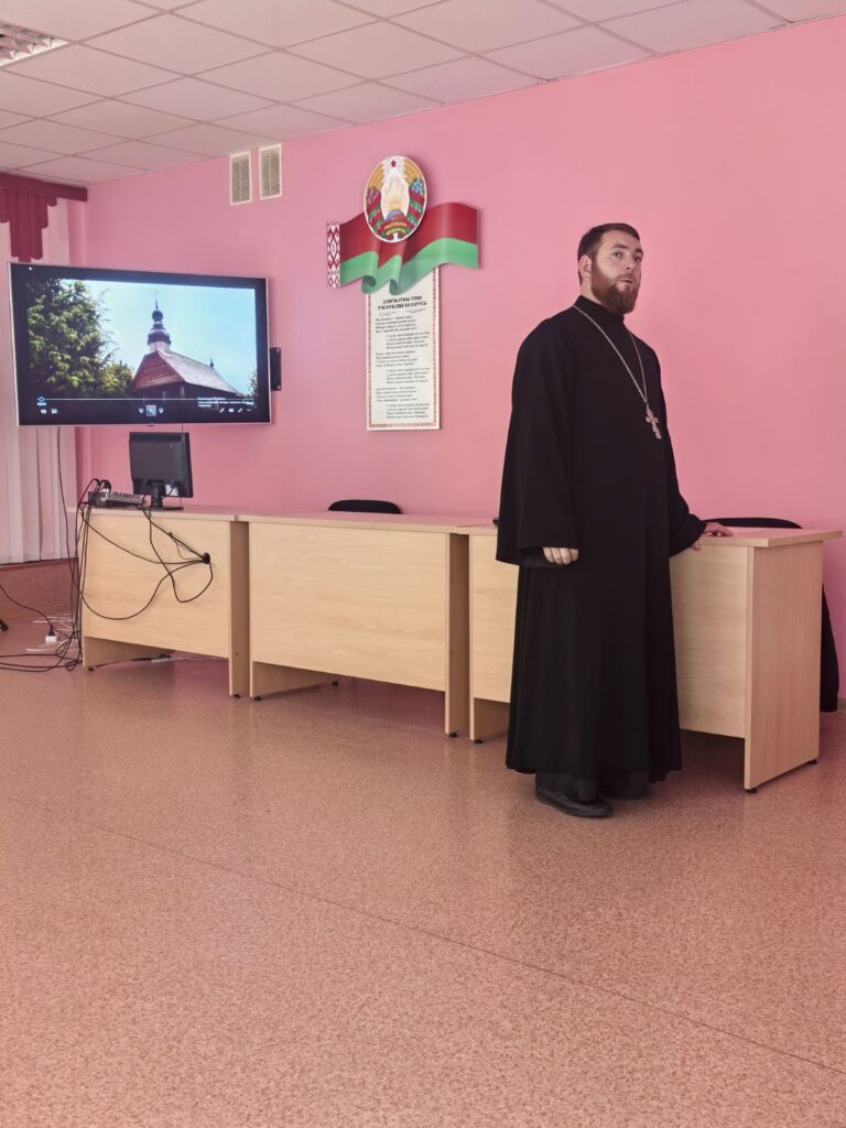 21 октября 2025 года настоятель храма Покрова Пресвятой Богородицы в аг. Радостово иерей Леонид Коледа посетил ГУО «Радостовская средняя школа», где провел беседу с учащимися 5-9 классов на тему «Я и моя семья — без сквернословия».