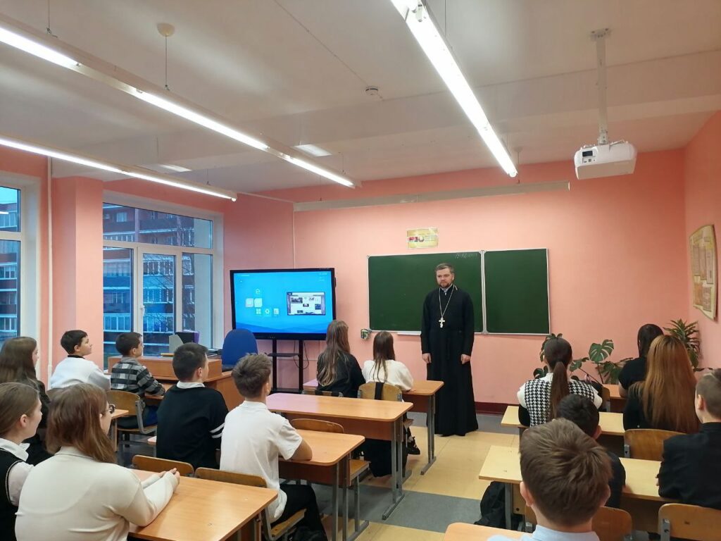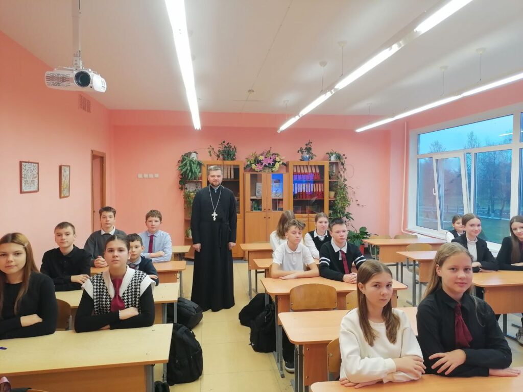 Священник напомнил евангельскую притчу о талантах, объяснив её смысл семиклассникам.