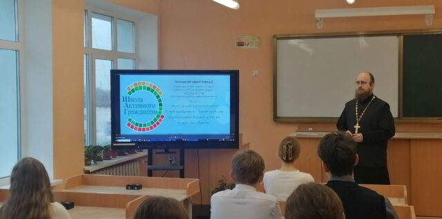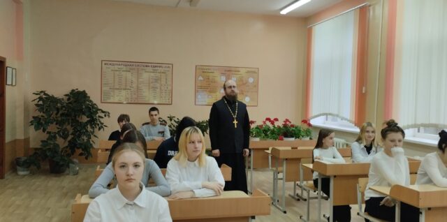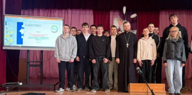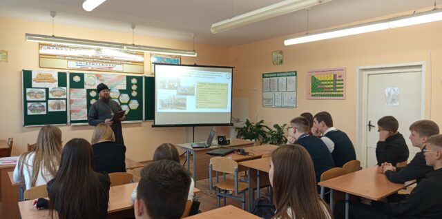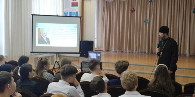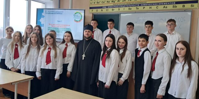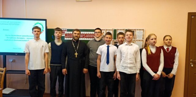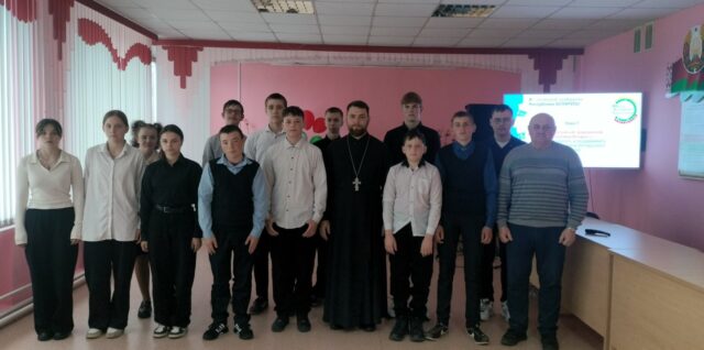 1 апреля 2026 года настоятель прихода храма Успения Пресвятой Богородицы в аг.Липники протоиерей Пётр Джига посетил ГУО «Ровинская СШ», где принял участие в информационно-образовательном проекте «ШАГ» с учащимися 9-11 классов. Темой встречи стало обсуждение: «Быть достойным гражданином Республики Беларусь – Продолжить чтение Встреча со священнослужителем прошла в Ровинской СШ