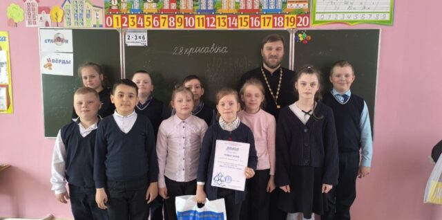 27 апреля 2026 г. настоятель храма святого великомученика Георгия Победоносца в д. Воловель иерей Сергий Остапович провел беседу с учащимися 6-8 классов ГУО «Воловельская средняя школа» на тему: храмы Беларуси. Батюшка рассказал детям о самых известных древних храмах и монастырях Продолжить чтение Встреча в Воловельской СШ