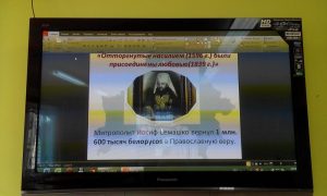 В ходе рассказа была показана видео презентация «180 лет Православному Полоцкому собору. Также сестра Галина рассказала и показала фото церквей Дрогичинского благочиния, которые в этот период правления униатской веры были построены как униатские: Антопольский Воскресенский храм, храм Рождества Пресвятой Богородицы д.Вавуличи, Покровский храм аг.Детковичи, Успенский храм д.Лосинцы, Преображенский храм аг.Новая Попина, Покровский храм аг.Радостово, Успенский храм д.Перковичи. Затем все храмы были перестроены на православные. Рассказала также сестра милосердия историю униатского монастыря в аг.Именин, его настоятеле — священике Донате Новицком. По первому образованию — он был офицер. Прошел Соловецкий лагерь. В 1932–м был освобожден после обмена заключенными между СССР и Польшей. С того же года служил в греко–католическом приходе в Торокани. В 1939–м переехал в Зеленку под Варшавой. В памяти жителей Торокани священник остался как учитель и меценат. Многим молодым людям из деревень, окружавших Тороканский монастырь, он дал дорогу в жизнь. За свои средства отправлял крестьянских детей учиться в польские города.