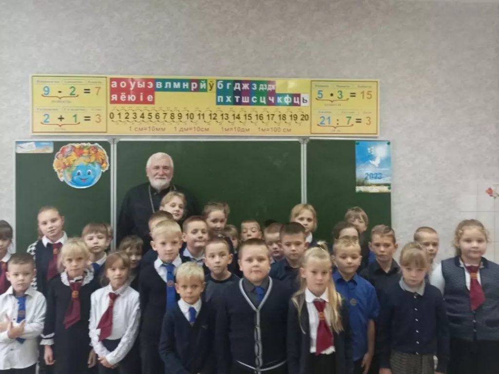 27 октября 2023 г., в рамках плана взаимодействия школы с приходом  храма Преображения Господня а аг. Новая Попина, для учащихся 2-4 классов в школе была организована встреча с настоятелем храма протоиереем Василием Михновцом.