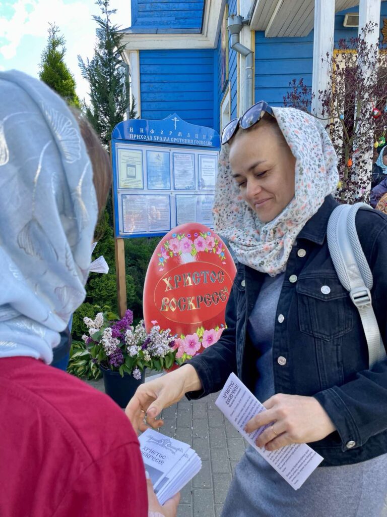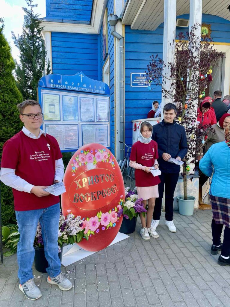 По благословению настоятеля храма Сретения Господня иерея Александра Кучмы 12 мая 2024 г. молодежное братство в честь святителя Нектария Эгинского, действующее при храме, провело акцию по распространению