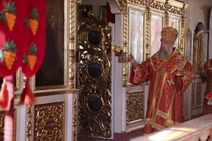 По окончании Литургии был совершен Крестный ход вокруг храма, после чего молящиеся были окроплены святой водой. Затем Его Высокопреосвященство обратился к прихожанам храма со словами архипастырского назидания и наставления на тему Недели о расслабленном.