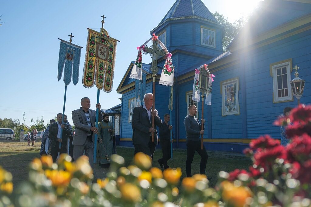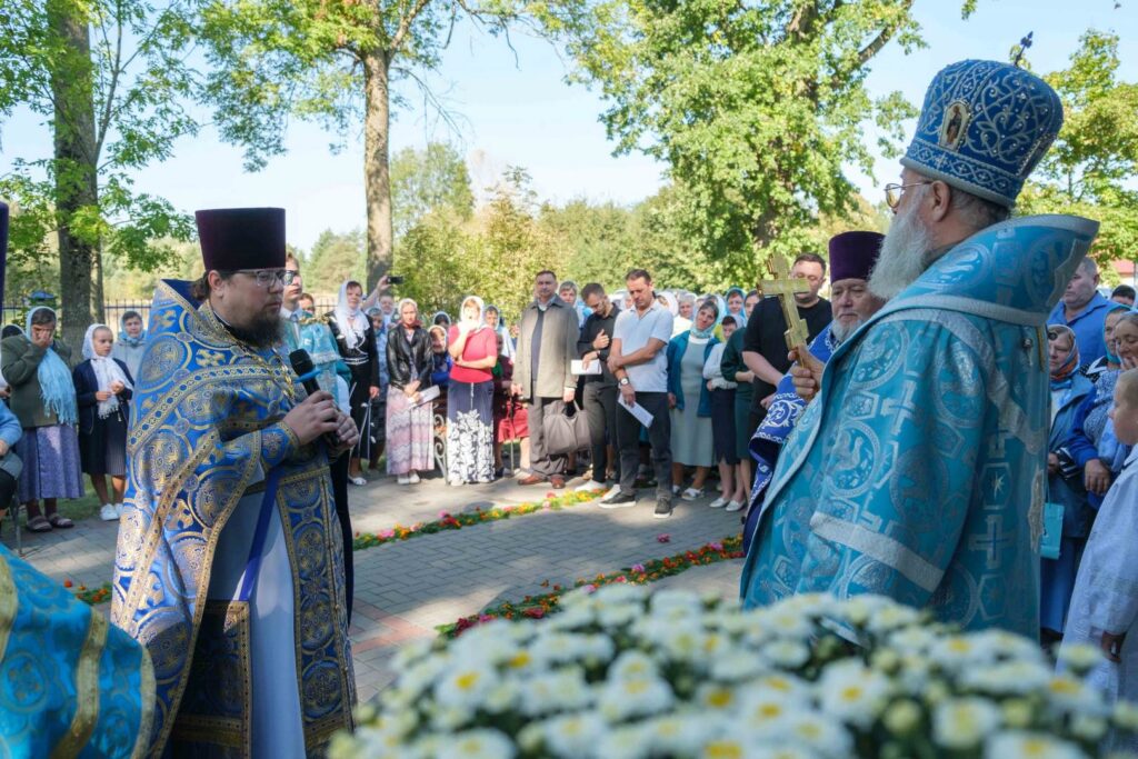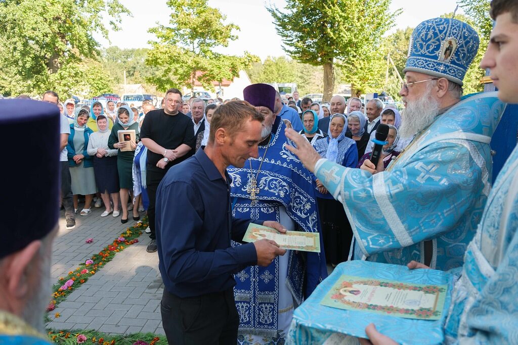 По окончании Божественной литургии архиепископ Иоанн возглавил крестный ход, совершил окропление святой водой храма и захоронений, находящиеся на территории. В завершение богослужения архипастырь обратился к молящимся со словом назидания, поздравил причастников с принятием Святых Тела и Крови Христовых, а также выразил слова благодарности и вручил церковные награды потрудившимся на благо прихода и Брестской епархии. Далее настоятель от имени прихожан обратился к Управляющему Брестской епархией со словами благодарности за посещение прихода и совместную молитву.