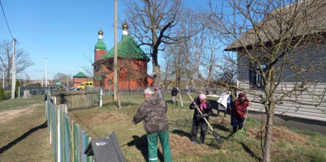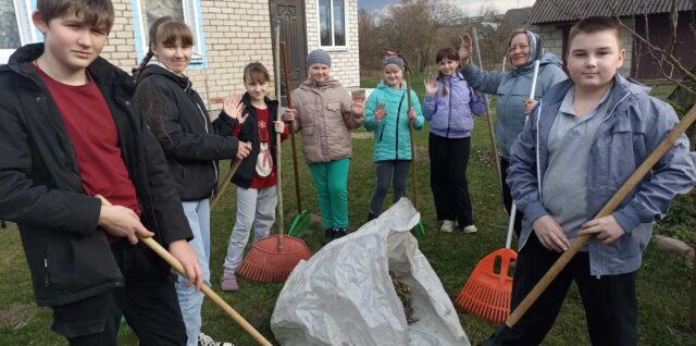 Учащиеся Воскресной школы прихода храма Успения Пресвятой Богородицы в дер. Перковичи приняли участие в субботнике