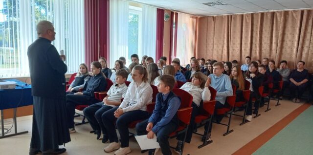 26 сентября 2025 г. настоятель храма Покрова Пресвятой Богородицы в аг. Радостово иерей Леонид Коледа посетил ГУО «Радостовская средняя школа» и встретился с учащимися 11 класса. Батюшка провел беседу о вреде наркотических, психотропных, токсических веществ, а так же о проблеме Продолжить чтение Встреча в Радостовской СШ