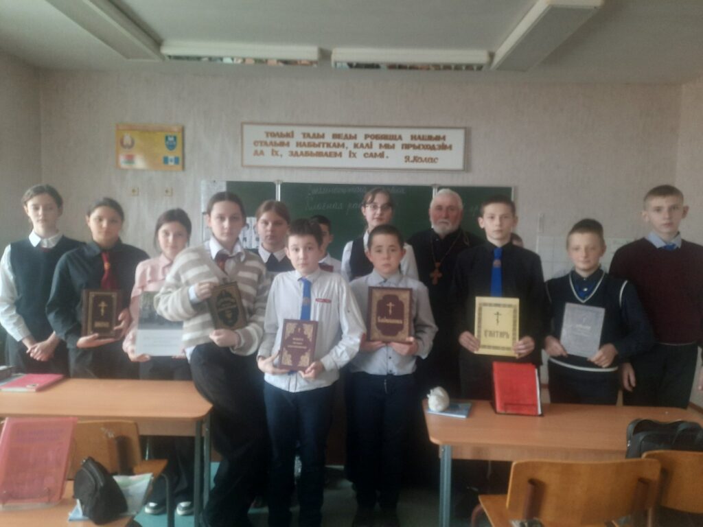 18 марта 2025 года настоятель храма Преображения Господня в аг. Новая Попина протоиерей Василий Михновец провел беседу с учащимися 7 класса ко Дню православной книги.