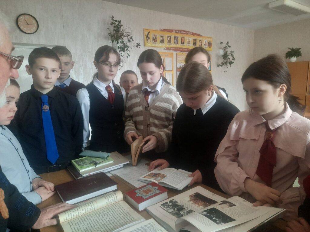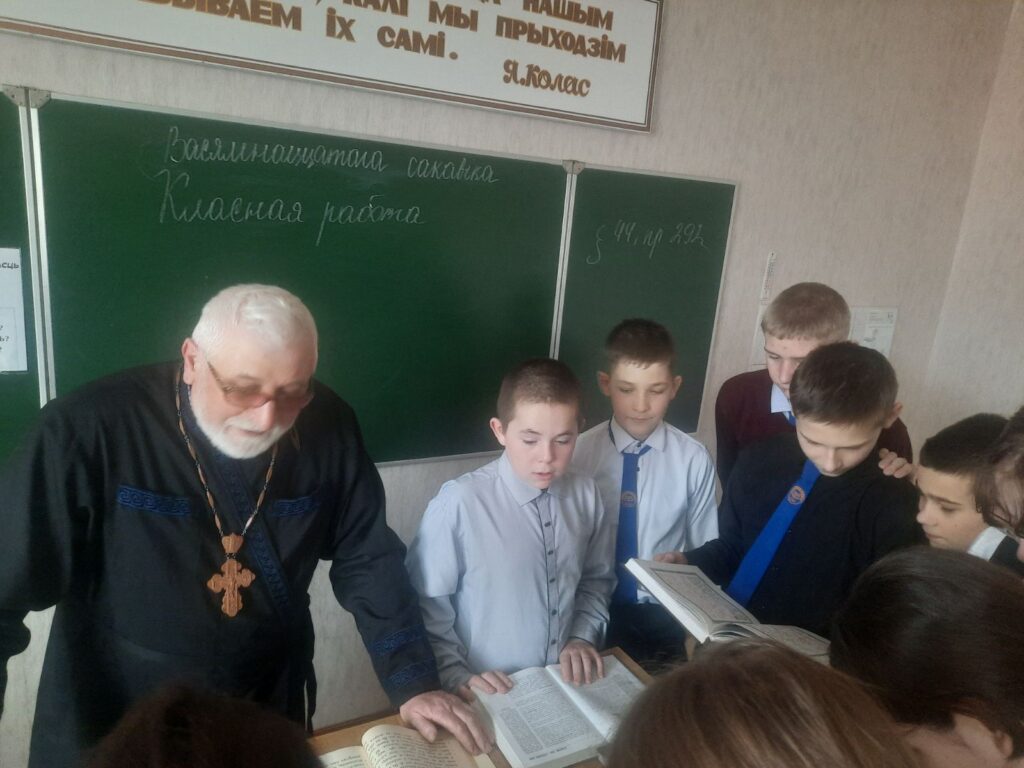 18 марта 2025 года настоятель храма Преображения Господня в аг. Новая Попина протоиерей Василий Михновец провел беседу с учащимися 7 класса ко Дню православной книги.