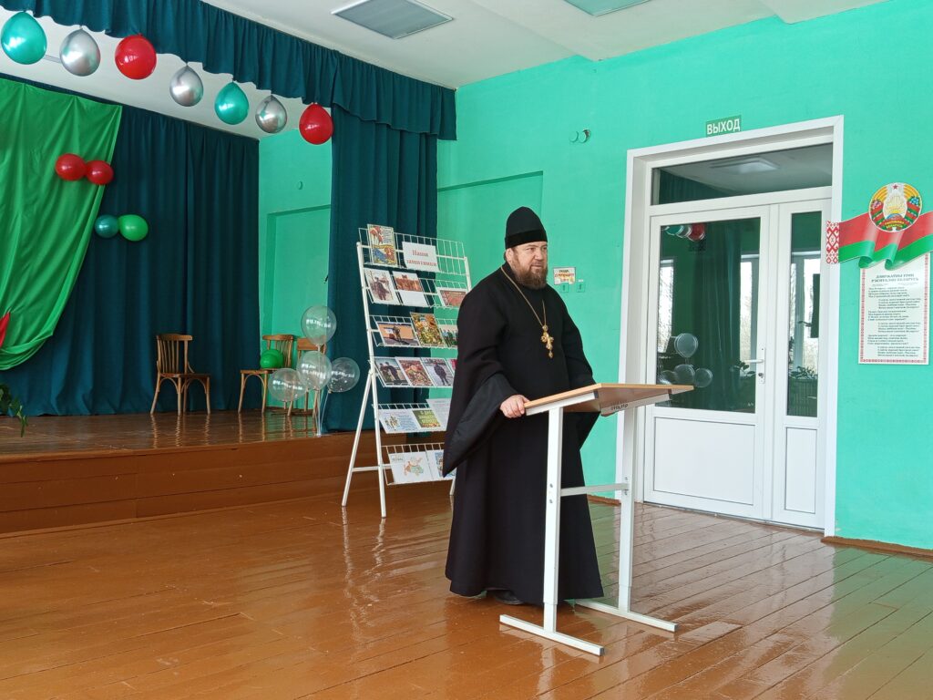 20 февраля 2026 г. настоятель прихода храма Успения Пресвятой Богородицы в аг. Липники протоиерей Пётр Джига провёл беседу в ГУО «Ровинская средняя школа» с учащимися 3-8 классов на тему: «День защитника Отечества».