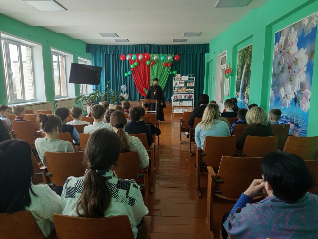20 февраля 2026 г. настоятель прихода храма Успения Пресвятой Богородицы в аг. Липники протоиерей Пётр Джига провёл беседу в ГУО «Ровинская средняя школа» с учащимися 3-8 классов на тему: «День защитника Отечества».