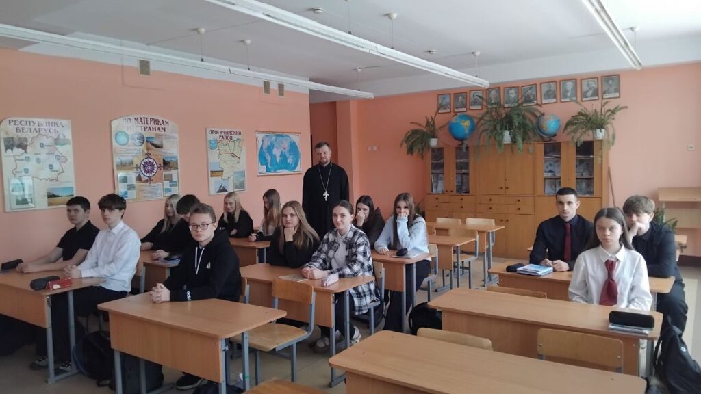 12 февраля 2026 года в средней школе №1 г. Дрогичина состоялась диалоговая площадка, объединившая духовенство и молодежь. Клирик храма Сретения Господня в г.Дрогичине священник Александр Полоско провел беседу с учащимися 10 «В» класса на тему, которая сегодня волнует каждого подростка, – «Любовь и влюбленность».