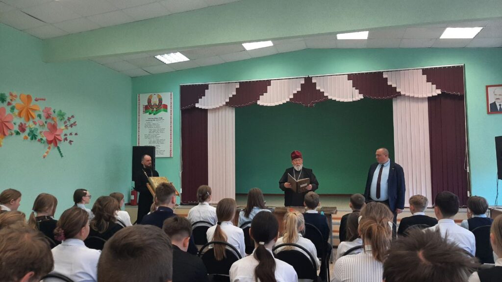19 марта 2026 года настоятель прихода храма Святой Живоначальной Троицы в аг. Бездеж протоиерей Геннадий Ворон и настоятель прихода храма святых Константина и Елены в дер. Завершье иерей Александр Зинович провели беседу с учащимися 6-8 классов Бездежской СШ, посвященную Дню Православной книги.