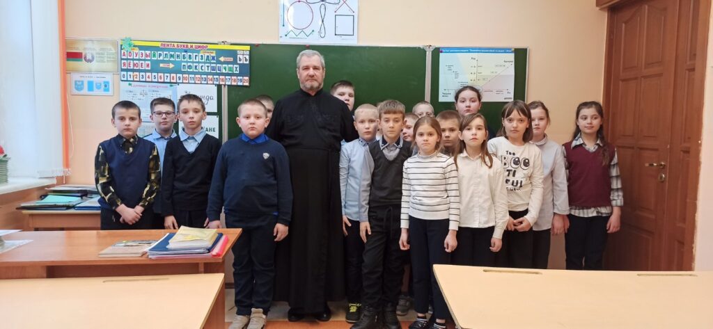 22 января 2025 г. настоятель храма Архангела Михаила в агрогородке Осовцы иерей Леонид Куровский посетил своих подопечных — учащихся Осовецкой средней школы. В 4-м классе состоялась беседа на тему праздника Крещения Господня, в ходе которой настоятель рассказал ребятам библейскую историю рождения и жизни Пророка, Предтечи и Крестителя Господня Иоанна. Отец Леонид также акцентировал внимание ребят и раскрыл им суть праздника Богоявления. В ходе общения инициативу часто перехватывали  учащиеся, активно дополняя рассказчика. В завершение встречи священник ответил на вопросы ребят, затем состоялось совместное фотографирование