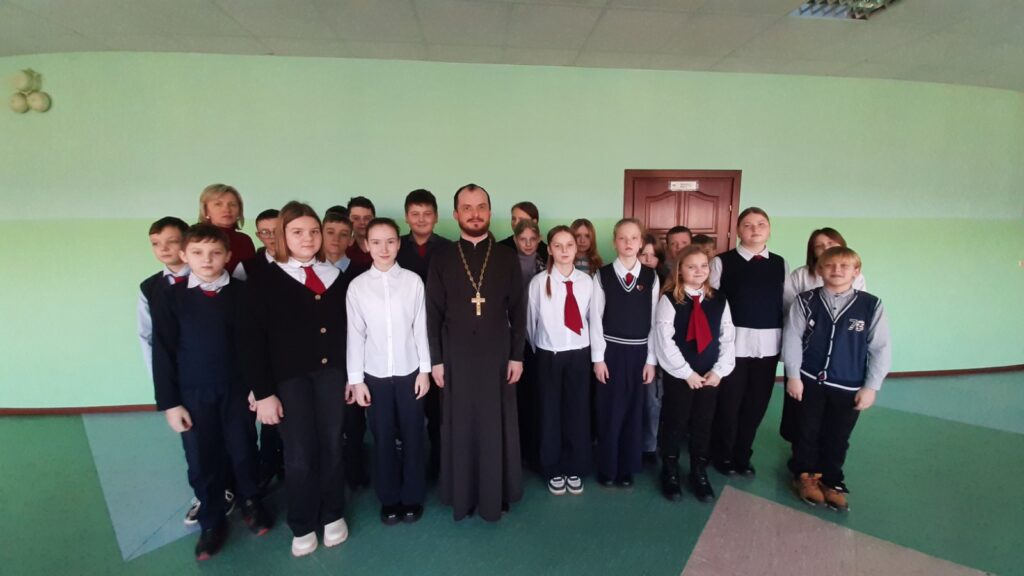27 января 2025 г. в день отдания Крещения Господня, настоятель прихода храма святых равноапостольных Константина и Елены в дер. Завершье иерей Александр Зинович посетил Бездежскую среднюю школу. Священник провел беседу с учащимися 5-6 классов. Темой беседы были январские праздники.