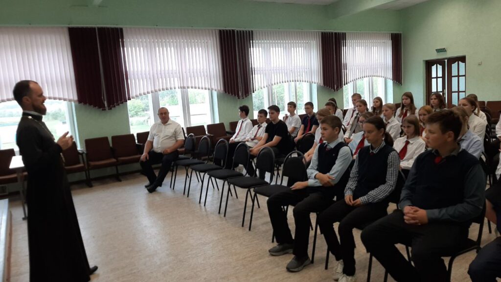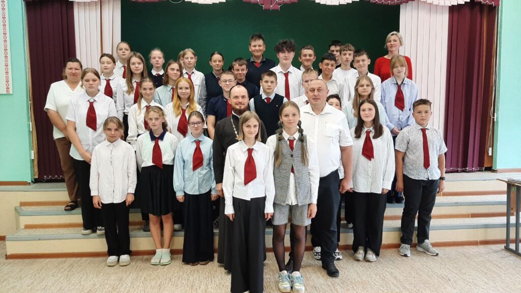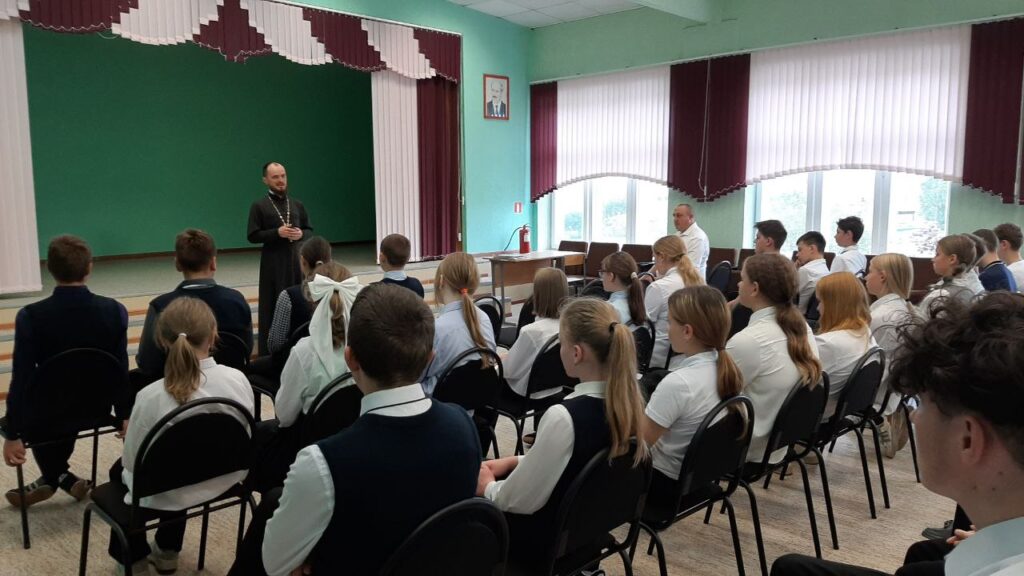 11 сентября 2025 года, в день Усекновения главы Крестителя Господня Иоанна, настоятель прихода святых равноапостольных царя Константина и царицы Елены в дер. Завершье иерей Александр Зинович провел беседу с учащимися 7-10 классов Бездежской средней школы.