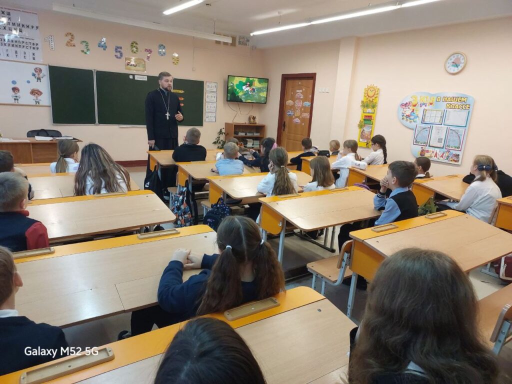 13 ноября 2025 г. в 4 «А» классе средней школы №1 г. Дрогичина состоялась встреча клирика храма Сретения Господня в г. Дрогичине иерея Александра Полоско с учащимися. Тема беседы: «Какого цвета бывает боль?».