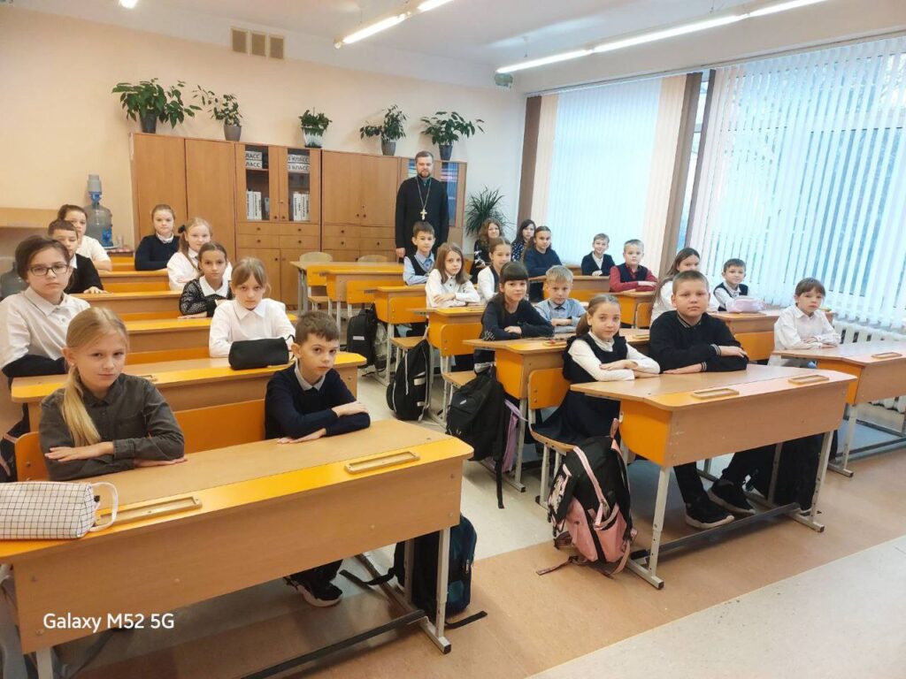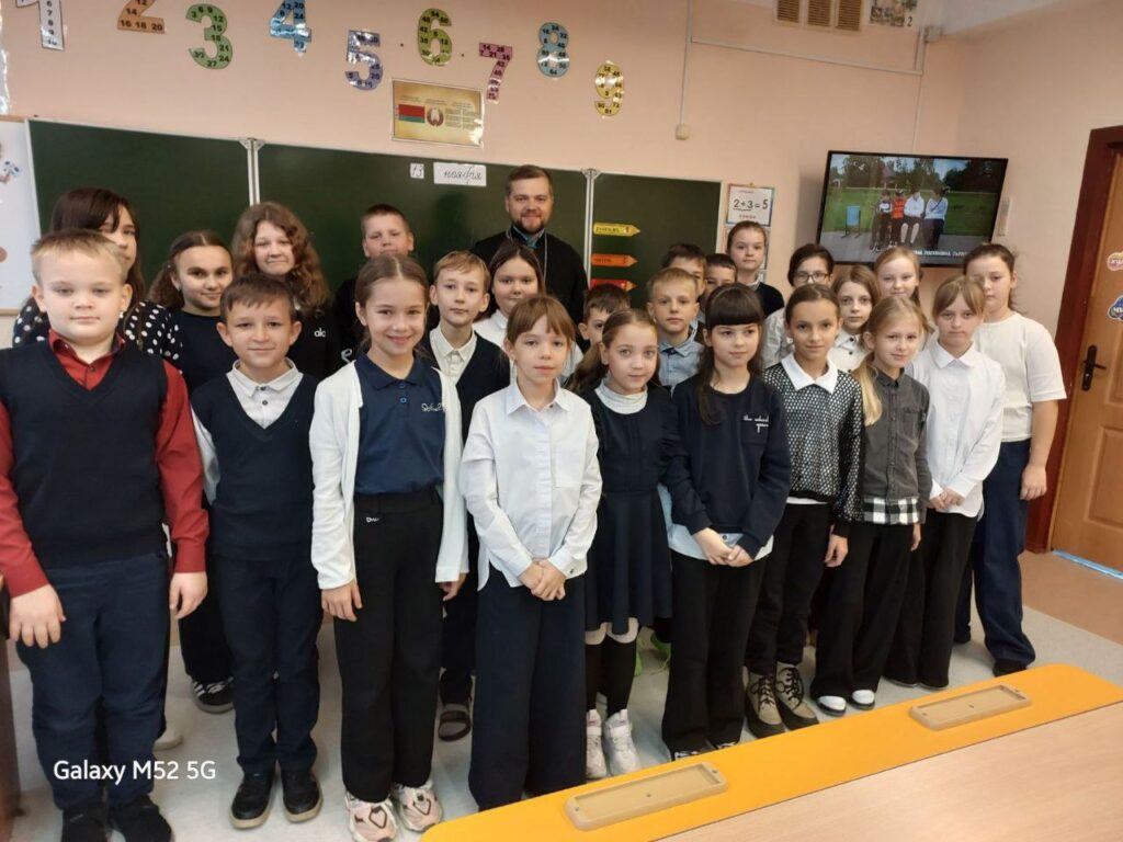 13 ноября 2025 г. в 4 «А» классе средней школы №1 г. Дрогичина состоялась встреча клирика храма Сретения Господня в г. Дрогичине иерея Александра Полоско с учащимися. Тема беседы: «Какого цвета бывает боль?».