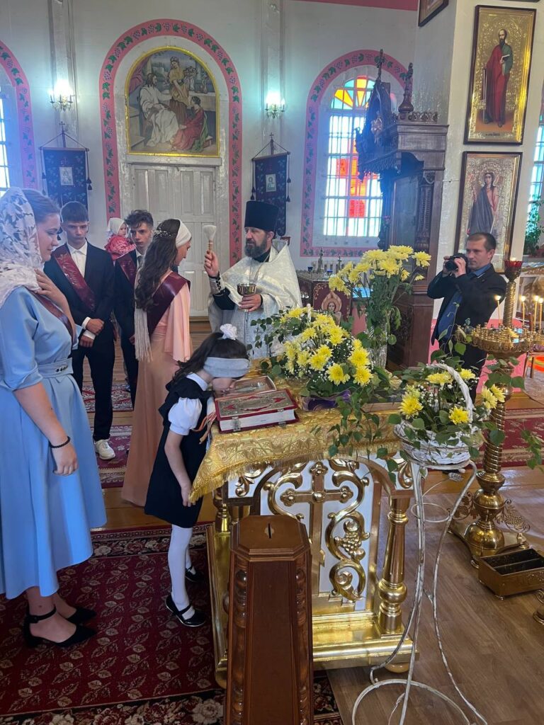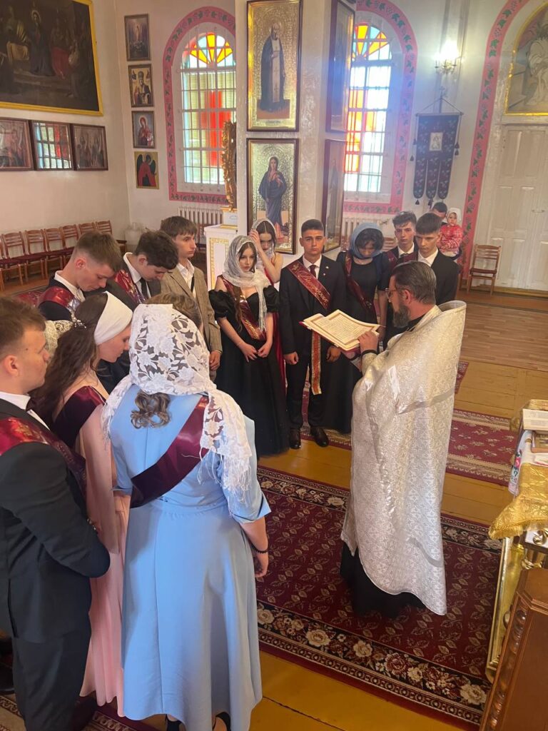 13 июня 2025 г., по традиции, перед школьным выпускным вечером настоятель храма Воскресения Христова в г. п. Антополь протоиерей Алексий Микулич отслужил Благодарственный молебен для выпускников. После молебна батюшка пожелал ребятам мудрости в выборе жизненного пути, помощи Божией во всех начинаниях и благословил на достойное вхождение во взрослую жизнь.