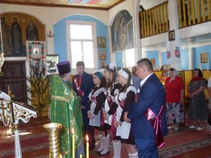 После поздравления ребят с окончанием учебного года и напутственных слов от директора, учителей и приглашенных гостей выпускники с родителями направились в храм Воздвижения Креста Господня агрогородка Головчицы, где состоялся благодарственный молебен.