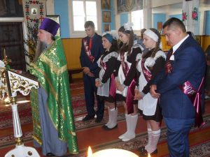 По окончании молебна настоятель храма иерей Александр Бондарев поздравил выпускников с окончанием школы, пожелал помощи Божией в предстоящих выпускных экзаменах и поступлении в ВУЗы.