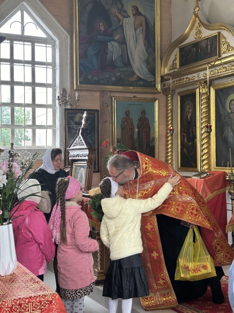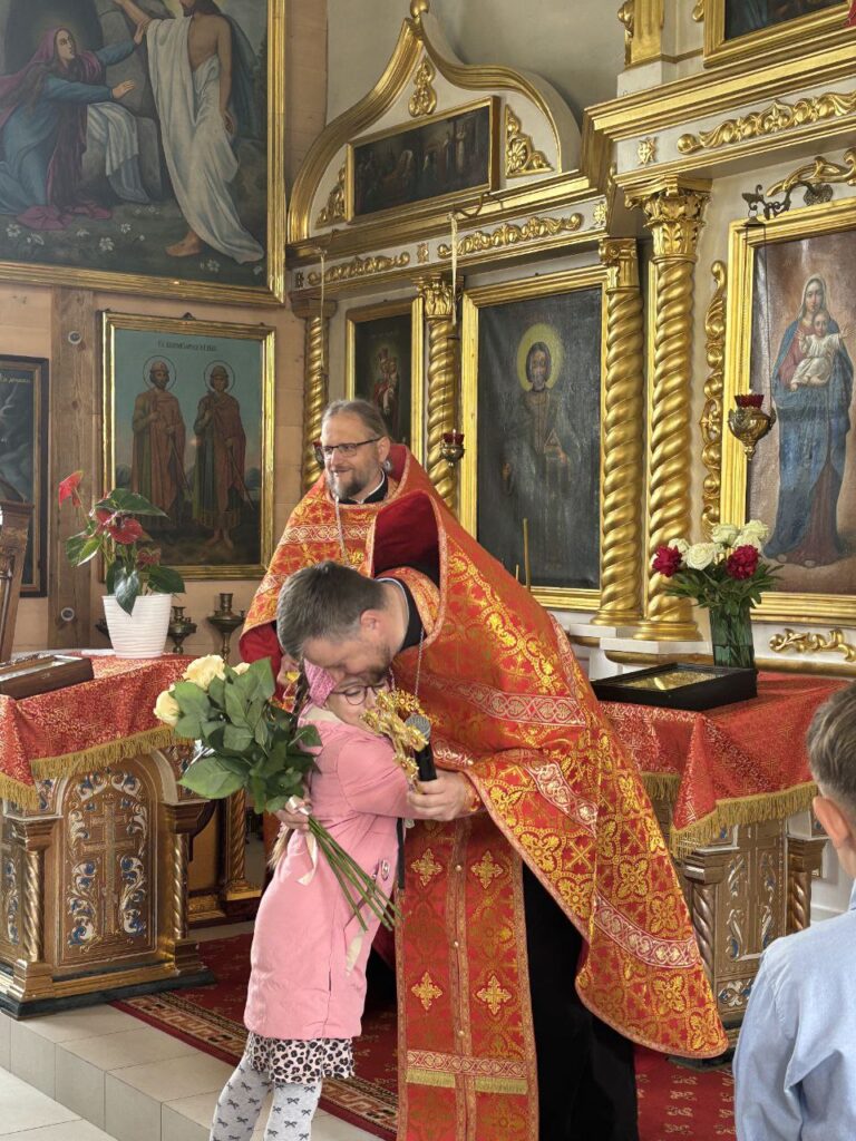 Затем к собравшимся обратился настоятель храма иерей Александр Кучма. Он пожелал детям не терять интерес к знаниям и продолжать развиваться, не забывая о знаниях, полученных в воскресной школе. Всем учащимся воскресной школы настоятель храма вручил шоколадки.