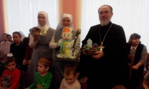Священник поздравил всех присутствующих детей и взрослых со светлым праздником Рождества Христова и вручил сладкие подарки детям, а также для корекционного центра