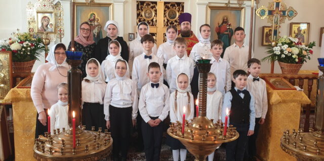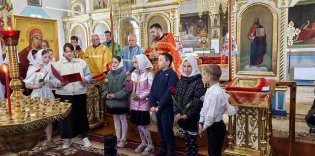 26 апреля 2026 г. в День святых жен-мироносиц в храме Покрова Пресвятой Богородицы в агрогородке Радостово, по окончанию Божественной Литургии, воспитанники воскресной школы подготовили небольшой концерт и поздравили прихожанок с праздником. Дети в стихах прославляли Воскресшего Христа и женщин, которые и Продолжить чтение Праздничное выступление учащихся воскресной школы