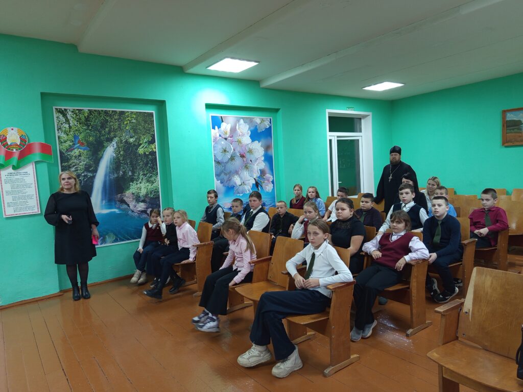 27 ноября 2025 г. настоятель прихода храма Успения Пресвятой Богородицы в аг. Липники протоиерей Пётр Джига провёл беседу в ГУО «Ровинская средняя школа» с учащимися 2-7 классов на тему: «Делать добро – великое счастье».