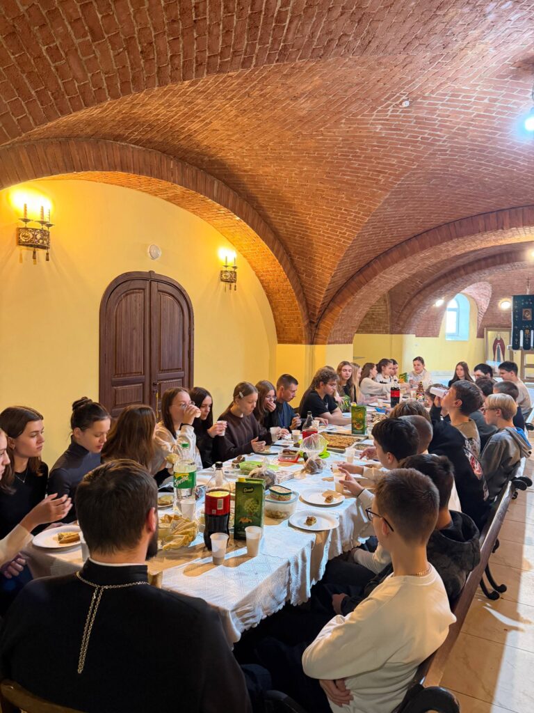 22 февраля 2026 г., в канун Великого поста, на цокольном этаже храма прп. Евфросинии Полоцкой в г. Дрогичине состоялась братская встреча православной молодежи «Два братства, одна Церковь». За общим столом собрались участники братства в честь святых первоверховных апостолов Петра и Павла, действующего при храме преподобной Евфросинии Полоцкой, и братства в честь святителя Нектария Эгинского, действующего при храме Сретения Господня в г. Дрогичине.