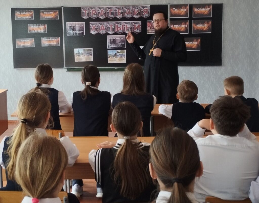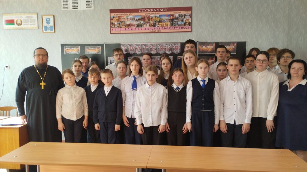 19 марта 2026 г. настоятель храма Рождества Пресвятой Богородицы в дер. Ляховичи принял участие в уроке памяти жертв д. Хатынь в ГУО «Заречковской средней школе» с учащимися 5-11 классов. В преддверии скорбной даты — 83 годовщины трагедии в Хатыни, учащиеся школы собирали материалы по сожжённым в годы ВОВ деревням.
