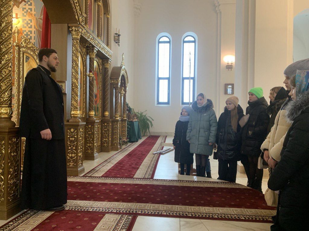 Священнослужитель рассказал о назначении и устройстве Православного храма, некоторых иконах, находящихся в этом храме. Гимназисты также побывали на клиросе, в нижнем храме и крестильне. В завершение дети поставили свечи о здравии своих родных и близких.