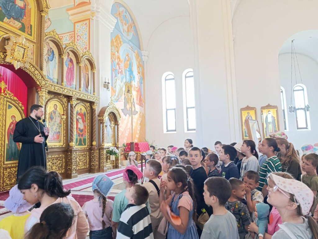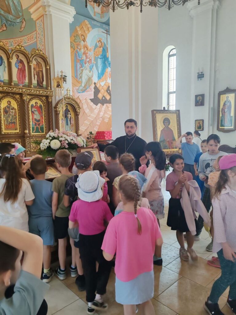 В преддверии Дня памяти преподобной Евфросинии Полоцкой, небесной заступницы Белорусской земли, 4 июня 2025 г. воспитанники ДОЛ «Мечта» средней школы N2 г. Дрогичина посетили с экскурсией храм преподобной Евфросинии Полоцкой в г. Дрогичине. Встречал школьников клирик храма священник Димитрий Гречко. Священнослужитель рассказал ребятам об устройстве и святынях Евфросиниевского храма, желающие приложились к иконе Вознесения Господня на центральном аналое.