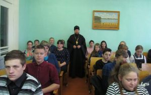 Священник сказал, что мы каждый раз приходим в школу и знакомим вас с учением, которого нет в школьных учебниках – это учение основано на Евангельских Заповедях Божиих о спасении души. Как важно в юном возрасте правильно выбрать на кого вы будете работать всю жизнь — или вы выбрали жизнь с Богом или вы работаете на дьявола. Нужно стараться, чем раньше понять для себя, в чем счастье, куда стремиться. Можно много в жизни работать, достичь своей цели, но истратить свою энергию. Нет больше сил жить, нет у человека интереса к жизни. Где ее можно почерпнуть? Если у человека нет денег, он идет в банк, берет кредит.